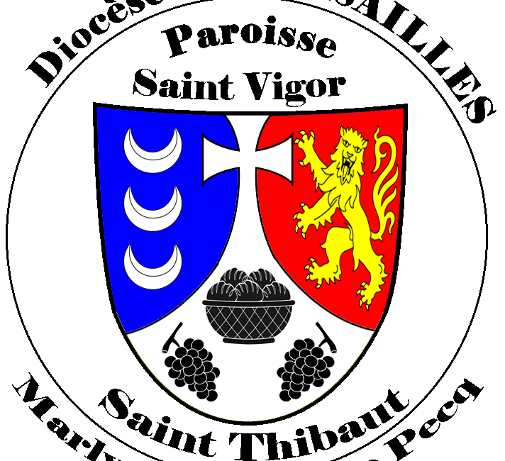 « D’argent, surmonté d’une croix fichée et pattée du même, chapé-ployé, à la corbeille de sable accompagnée de deux grappes de raisins du même ; la chape dextre d’azur aux trois [...]