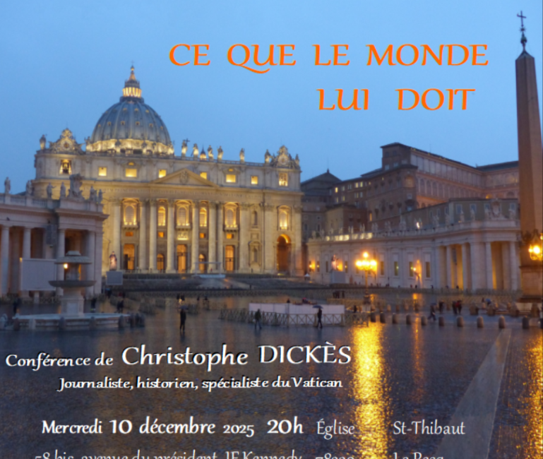 La conférence du 10 Décembre par Christophe Dickès est en ligne sur la chaine Youtube du groupement paroissial