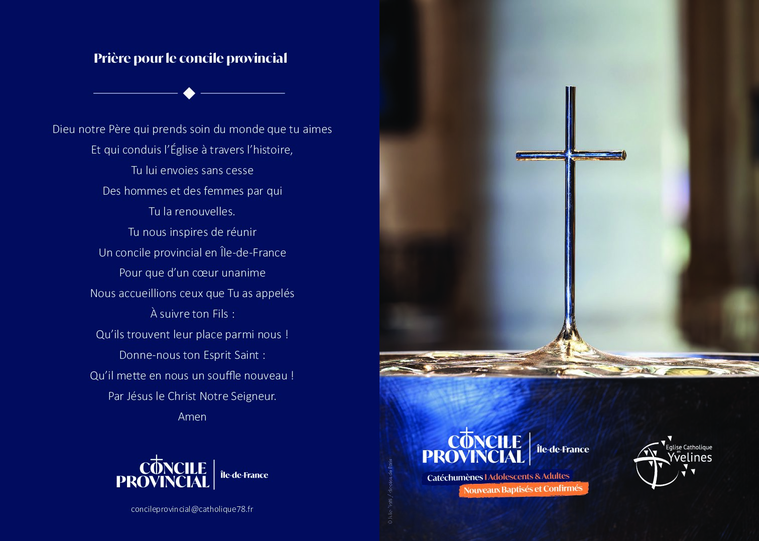 Depuis quelques années, le nombre croissant de catéchumènes adolescents et adultes représente un défi et un appel de l’Esprit Saint pour chacune de nos communautés. Défi de les accueillir et de les initier à la vie chrétienne ; appel pour nos communautés à se laisser transformer par cette nouveauté. Avec les évêques d’Ile-de-France, nous convoquons un Concile provincial pour répondre à ce défi et cet appel. Une phase de consultation s’ouvre dans les semaines à venir pendant lesquelles chacun est invité à y prendre part. La participation du plus grand nombre est nécessaire pour que les travaux de l’assemblée conciliaire portent du fruit.